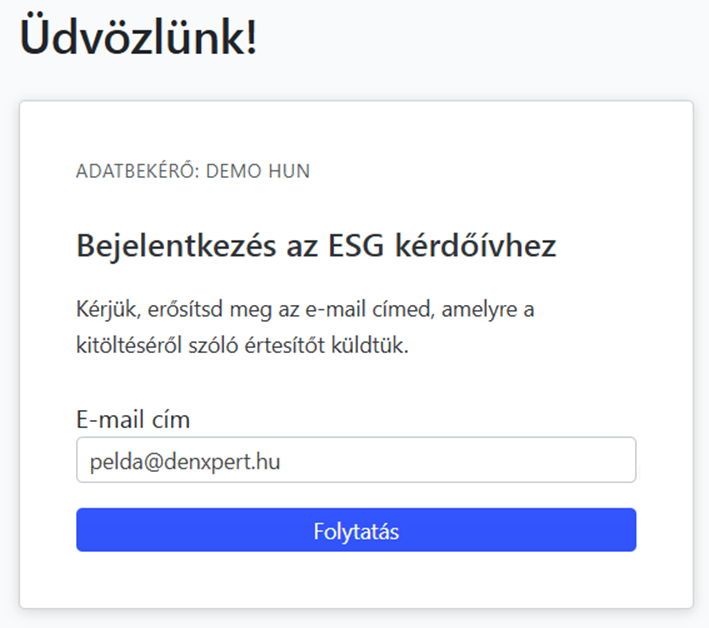 - A tájékoztató e-mailben kapott „Kérdőív kitöltése” linkre kattintva, adja meg az e-mail címet, amire a tájékoztató email érkezett.
