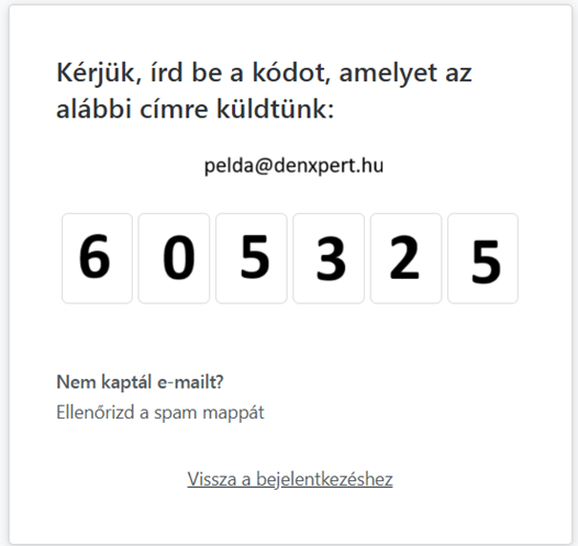 Ugyanarra az e-mail címre érkezik pár percen belül egy 6 jegyű kódot tartalmazó üzenet. Ezt a 6 jegyű kódot adja meg az authentikációhoz